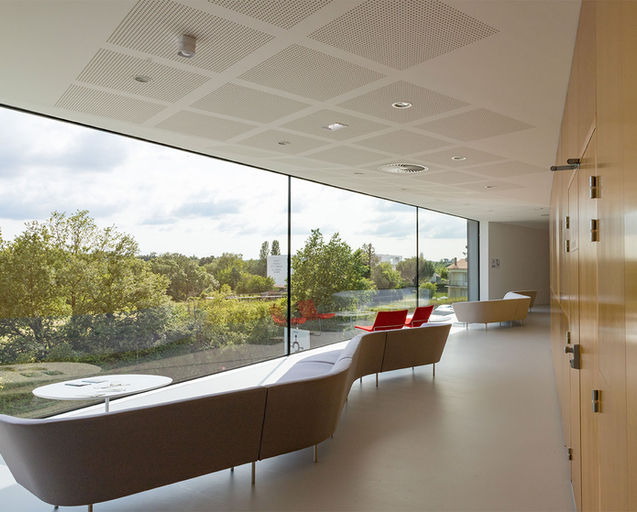 Hall d’entrée de 600 m², Théâtre Auditorium de 508 places, Salle multifonction Agora de 700 m² avec gradins dépliables de 572 places, espaces séminaires de 374 m² sur 2 niveaux.